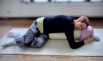 och fortsätter med yinyoga positioner för att få ett ökat flöde i kroppen.
